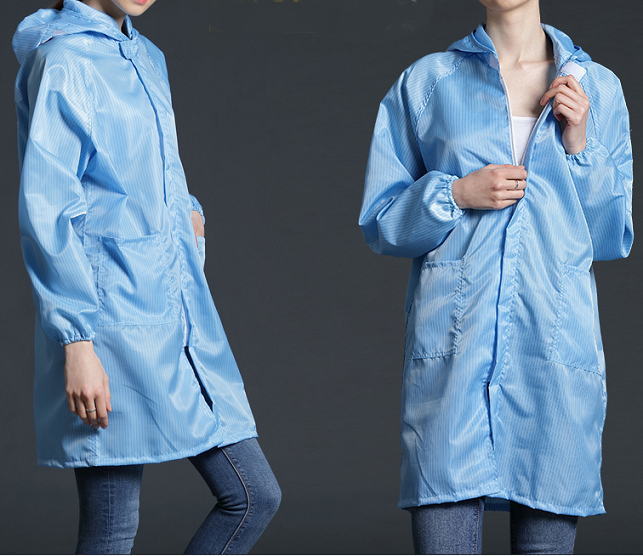 Antistatic ESD Stripe Polyester Garment with Hat , SP-GAR-01-1