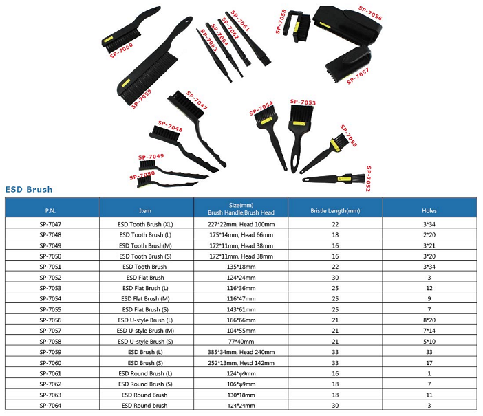 ESD brush made of electric-plastic in various shapes and size ,esd brush are used to clean various components without hurt or damage to them.